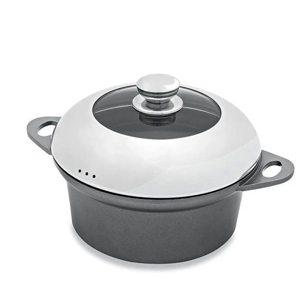 En fonte d’aluminium avec un revĂȘtement unique anti-adhĂ©rent, les matĂ©riaux nobles durs comme la pierre rĂ©sistent Ă  un usage intensif et aussi aux Ă©raflures.