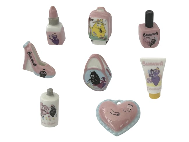 Boite de 100 fèves assorties en cĂ©ramique sur le thème “Barpapa Fashion”. Finition brillante.