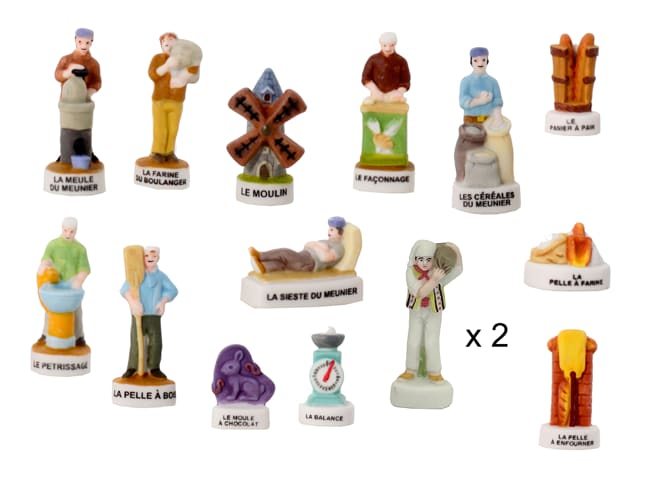 Fèves en céramique représentant le thème de la fabrication du pain.