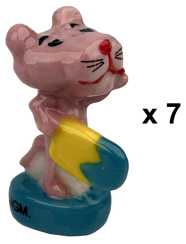 Lot de 7 fèves en céramique “Panthère rose”. Finition brillante.