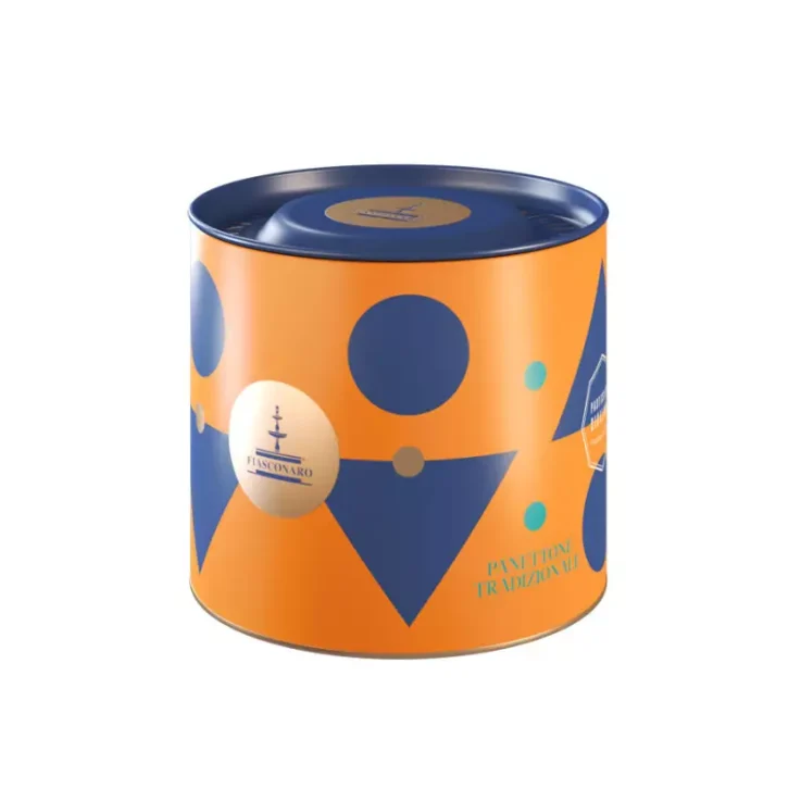 The Panettoncino Artigianale Tradizionale Fiasconaro con Canditi 100g, in the elegant BLUE tin, is an authentic expression of the Sicilian confectionery tradition and is produced in Castelbuono, in the heart of Sicily. The metal tin, decorated with elegant geometric motifs in shades of orange and blue, adds a touch of refinement, making it an ideal gift with the matching shopping bag. The soft, naturally leavened dough is enriched with fine orange candied fruit and sultanas flavoured with the finest Marsala PDO wine and the delicate Zibibbo Liquoroso IGP delle Terre Siciliane, giving the palate a unique and irresistible taste experience. A special gift that combines tradition, quality craftsmanship and the authentic flavours of Sicily.