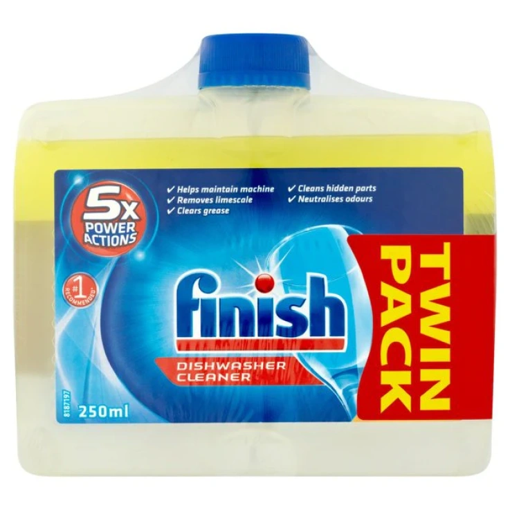 You may think your dishwasher is clean because it looks clean, but day after day, grease and limescale builds-up in its hidden & vital parts: filters, spray-arms and Pipes. For flawless results use Finish Dishwasher Cleaner, the only one with a dual-layer formula: its yellow layer removes grease and its clear layer targets limescale. And a cleaner dishwasher means cleaner dishes! 5x power actions, Helps maintain machine, Removes limescale, Clears grease, Cleans hidden parts, Neutralises odours.