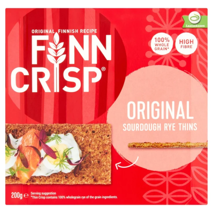 Thin Crisp contains 100% wholegrain rye of the grain ingredients. Original Finnish recipe, High fibre, Kosher – Parve