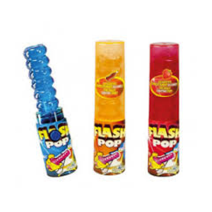 FUNNY CANDY – Sucette Flash Pop qui s’éclaire et qui se range dans son étui – 3 parfums : Fraise, Cola & Framboise – Vendu en gros conditionnement dans une boîte de présentation contenant 12 pièces (34 gr/unité)