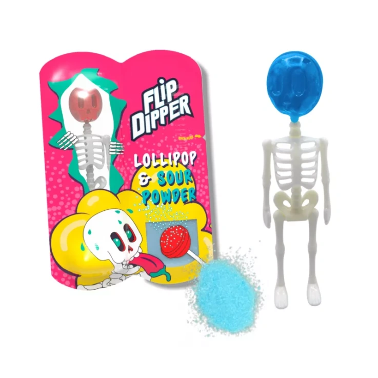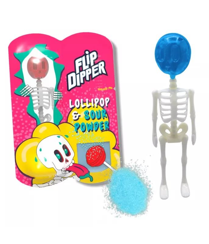 WOM – Squelette avec une tête en sucette à tremper – Vendu en gros conditionnement dans un présentoir contenant 18 unités