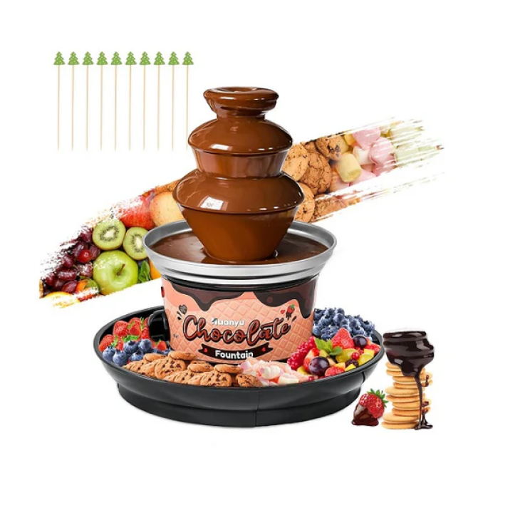 【Le plaisir du chocolat】Parfait pour une fête d’anniversaire, un mariage, un anniversaire, une fête de Noël ! Profitez d’un moment merveilleux avec la machine à fontaine de chocolat. Nous vous fournissons 10 belles brochettes en bambou pour faciliter le trempage dans le chocolat.【Sûre et durable】La fontaine à fondue au chocolat est fabriquée en acier inoxydable 304 de qualité alimentaire et en plastique de haute qualité, sûr et durable. Durée de vie plus longue. La mini fontaine à chocolat peut contenir jusqu’à 16 onces/450g de chocolat fondu, le gardant chaud et coulant.【Facile à utiliser et à nettoyer】Removable Serving tray is practical to hold fruits, marshmallows, biscuits, and any other foods you want to dip in the melting chocolate. La base de support réglable récemment améliorée assure un placement stable. La partie en acier inoxydable de la fontaine à chocolat est amovible et facile à nettoyer.【A noter】1. Utilisez du chocolat fondu ! 2. Éteignez la fontaine à chocolat pour faire fondre le chocolat dans les 2 heures pour permettre au moteur de dissiper la chaleur pendant plus de 15 minutes. Une utilisation continue de longue durée causera des dommages. 3. Pendant le chauffage, NE PAS ajouter d’eau. De l’huile alimentaire peut être ajoutée. 4. La fontaine de chocolat doit être placée fermement sur une surface stable afin que le chocolat s’écoule en douceur sur les étages.