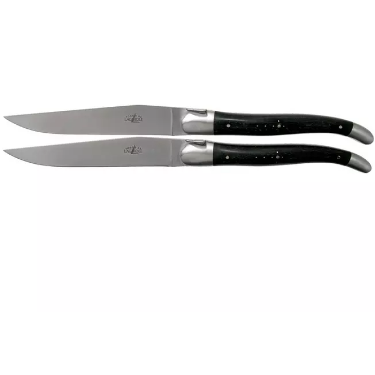 Forge de Laguiole, LAT22MINEB, set de 2 couteaux à steak mat, bois d’ébène