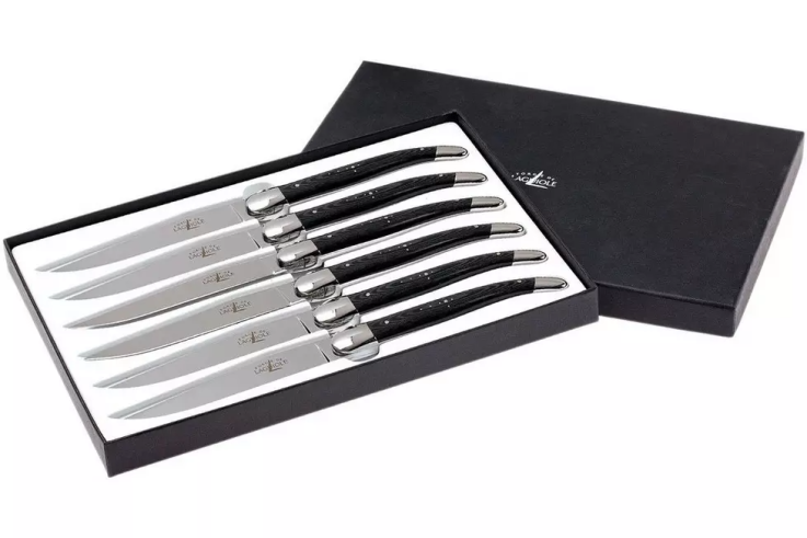 Forge de Laguiole, T62MINTCNOI, set de couteaux à steak en micarta