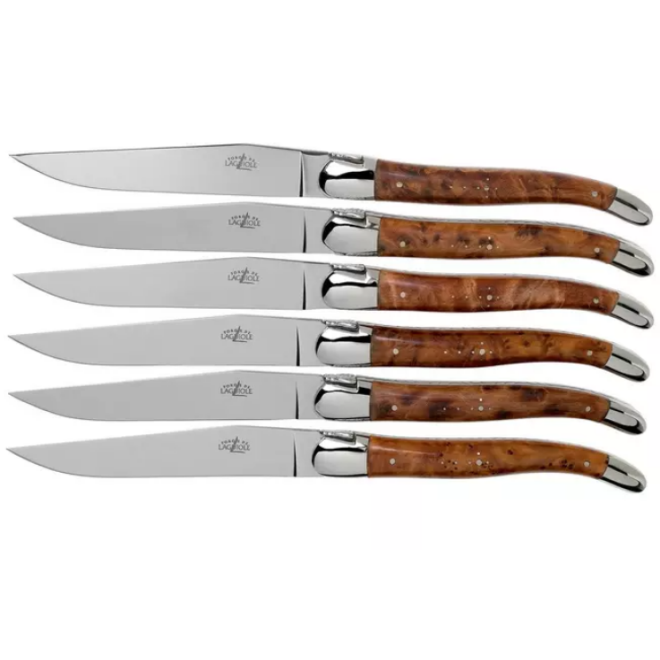 Forge de Laguiole T62MINTHBRI bois de thuya poli coffret de 6 couteaux de table
