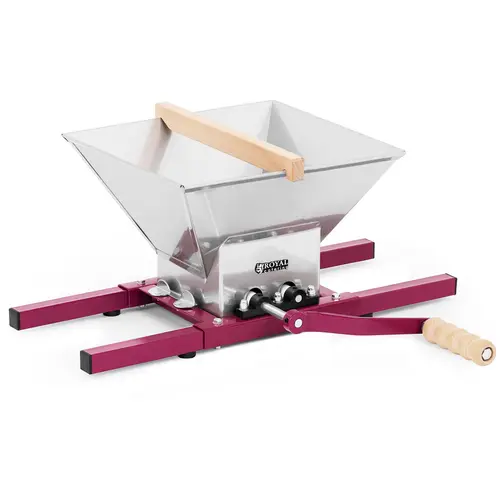 Le fouloir comporte une manivelle particulièrement grande et ergonomique à l’aide de laquelle on peut le faire fonctionner sans trop se fatiguer. Ses pieds ont été revêtus de plastique pour protéger le sol et ils procurent une bonne stabilité à l’appareil. Comme le fouloir raisin s’actionne à la main, il est parfait pour tous les endroits où les prises électriques sont difficiles d’accès ou inexistantes. Conçu pour vous servir durant de nombreuses années, ce modèle composé de fer, d’aluminium et d’inox se démarque par une construction robuste. Son mécanisme de broyage en aluminium massif, étudié pour être efficace, foule les ingrédients de telle sorte qu’ils aient une consistance optimale et bien juteuse.