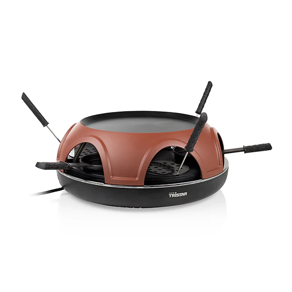 Avec une puissance de 1800 W et un élément chauffant à double boucle, il permet de cuire les différentes préparations en un rien de temps. Doté d’une plaque chauffante généreuse d’un diamètre de 25 cm, il se montre parfait pour assurer la cuisson des grillades de six personnes. L’appareil est fourni avec six pelles à pizza, six poêlons à raclette, un pour