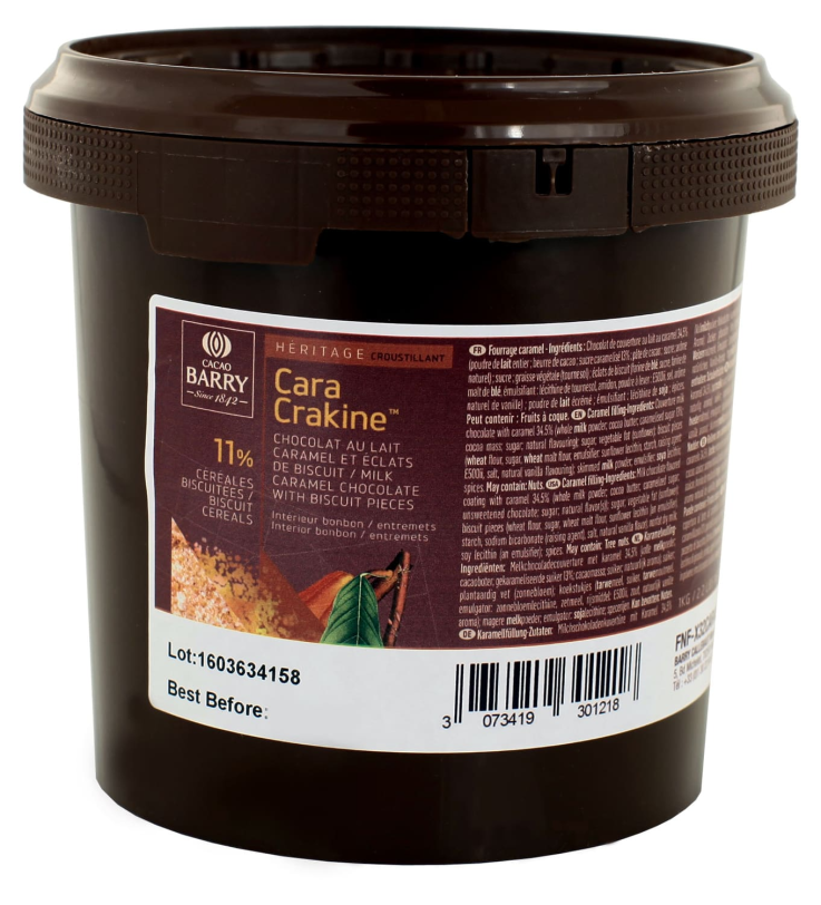 Ce fourrage croustillant au nougat de montélimar est une pâte prête à l’emploi pour insert dans un entremets (type Trianon).