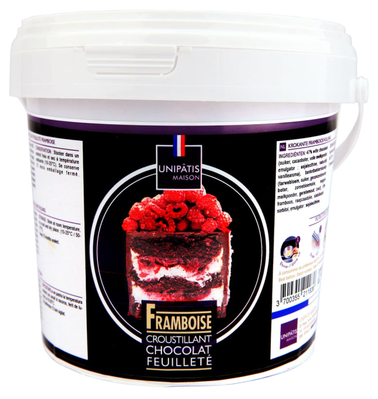 Ce fourrage croustillant à la framboise est une pâte prête à l’emploi pour insert dans un entremets (type Trianon).