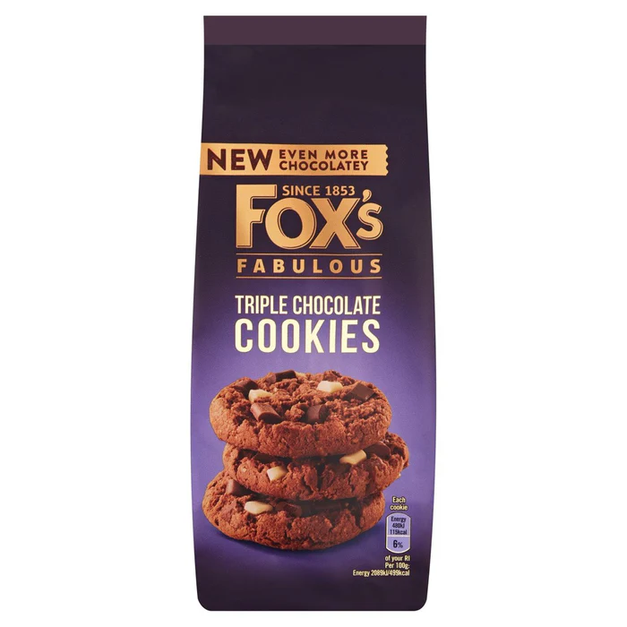 New, More Delicious Recipe. Our Fox’s cookies now taste even more delicious, our fabulous new recipe has more chocolate than ever. Even More Chocolate, Suitable for Vegetarian.