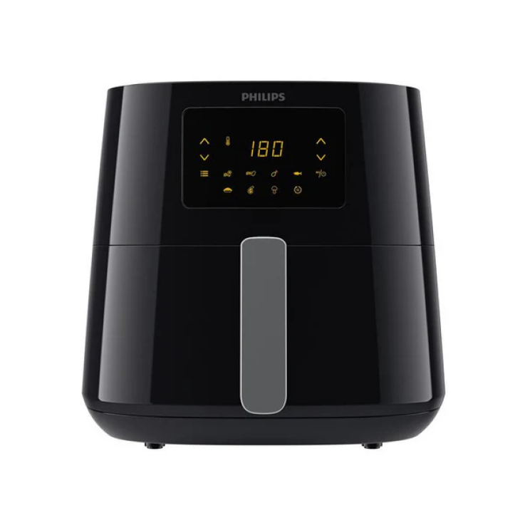 Friteuse 1,2 kg – Airfryer Essential – Les frites les plus savoureuses avec jusqu’à 90% de matières grasses en moins ! (comparé à des frites fraîches cuites dans une friteuse Philips standard) – Airfryer : une technologie qui se perfectionne depuis plus de 10 ans – Technologie brevetée Rapid Air permettant d’utiliser de l’air chaud pour frire, cuire, griller, rôtir et réchauffer tous vos plats et snacks préférés – Des recettes personnalisées selon vos préférences et des plats maison, en toute simplicité – Téléchargez l’application NutriU, recevez des recommandations de recettes quotidiennes qui tiennent compte des préférences de votre famille – Les recettes de l’application sont choisies par des experts en nutrition – Plus vous utilisez NutriU, mieux l’application adaptera ses idées de recettes à vos besoins – Trouvez l’inspiration auprès d’autres cuisiniers et cuisinières, et suivez des personnes aux goûts proches des vôtres – Écran tactile avec 7 préréglages : appuyez sur un bouton pour cuisiner – Les programmes préréglés permettent de cuire des en-cas surgelés, des frites fraîches, de la viande, du poisson, des pilons de poulet, des gâteaux et même des légumes grillés – Sa conception exclusive en étoile fait circuler l’air chaud afin d’obtenir de délicieux aliments croustillants à l’extérieur et tendres à l’intérieur, le tout avec très peu d’huile ajoutée – Passez à table quand vous êtes prêt – Sélectionnez le mode de Maintien au chaud pour maintenir vos aliments à la température idéale jusqu’à 30 minutes – Bouton marche/arrêt – Arrêt automatiqueSignal Prêt-à-utiliser – Thermostat – Témoin lumineux – Affichage LED – Réglage de la durée – Poignée froide pour une prise en main facile du panier – Le panier QuickClean de l’Airfryer est doté d’un revêtement anti-adhésif facilitant le nettoyage – La friture à l’air vous épargne les odeurs de la friture traditionnelle dans la maison – Livrée avec une grille double niveau supplémentaire avec accessoire brochettes – Cordon 1 m – Coloris Noir – Puissance 2000 W – Garantie 2 ans.