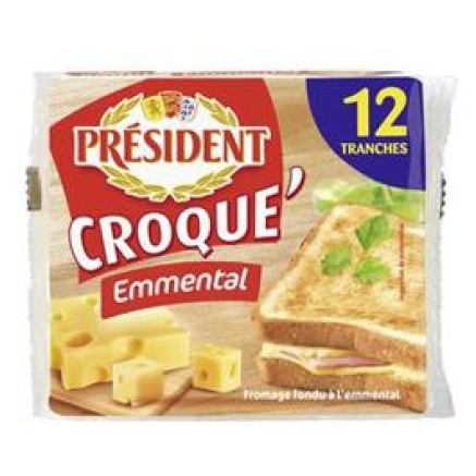 Fromage fondu au lait pasteurisé Croque’Emmental, 18%MG, PRESIDENT,12 tranchettes, 200g