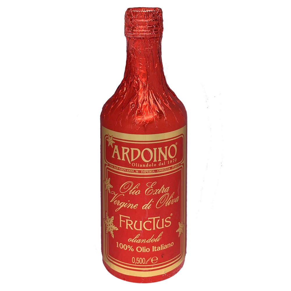 FRUCTUS NATALE i Huile d’olive extra vierge italienne Bouteille en verre de 500 ml, enveloppée dans une feuille d’aluminium rouge festive pour une protection solaire parfaite – Ardoino.