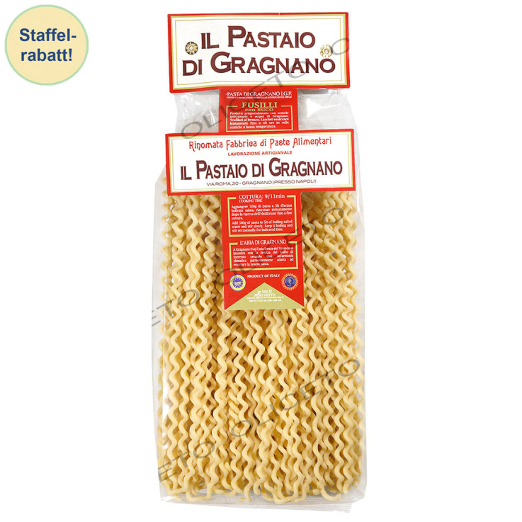 Fusilli con Buco. Longs cordons creux torsadés comme un tire-bouchon, pliés une fois 500 g de pâtes Pâtes de blé dur – Il Pastaio di Gragnano.