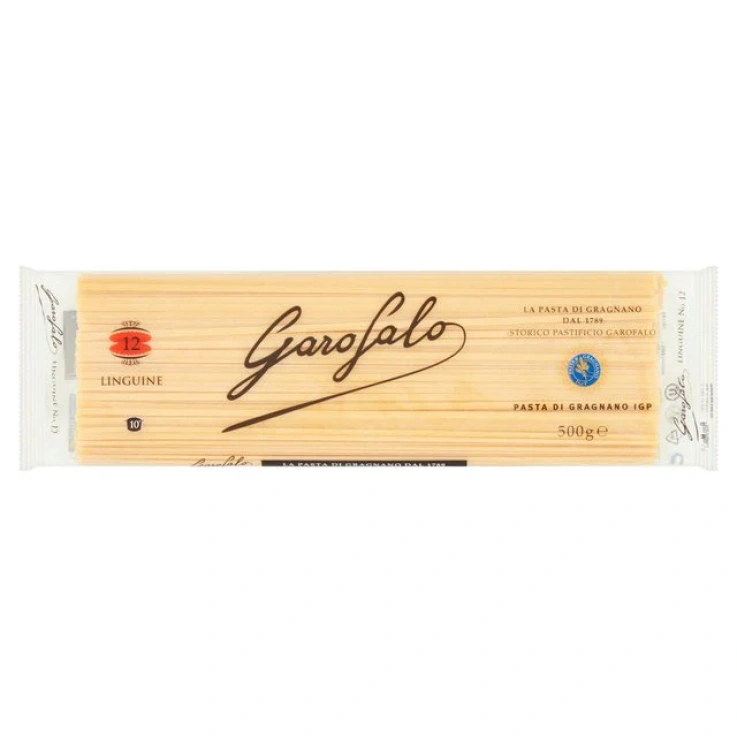 Garofalo has been making pasta for over 300 years in Gragnano near Naples in Italy, the home of pasta. Made from 100% robust desert durum wheat and shaped using a bronze die gives Garofalo pasta its premium taste and texture. Linguine originated in Genoa and the Liguria region of Italy. It is long flat pasta traditionally served with seafood or pesto. Linguine in Italian means `little tongues’.