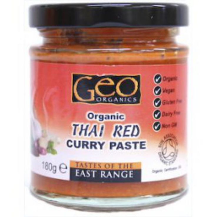 Créez votre propre délicieux curry rouge thaï avec cette pâte de curry rouge thaï de Geo Organics. Fabriqué avec des ingrédients naturels et biologiques, ce produit est sans produits laitiers, végétalien et convient à un régime sans gluten.