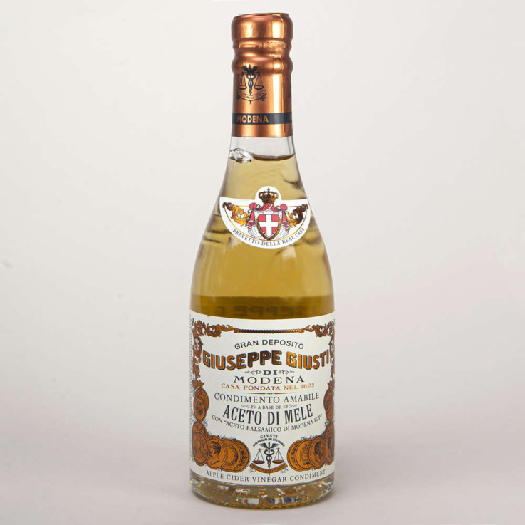 Condimento a base di Aceto di Mele – condiment à base de vinaigre de cidre de pomme avec Aceto Balsamico di Modena IGP Bouteille de 250 ml – de l’Acetaia Giusti.
