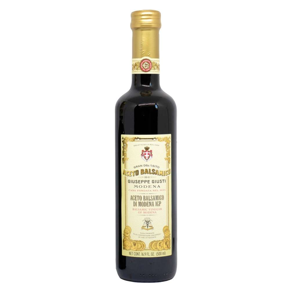 Giusti Balsamico di Modena IGP Bordolese 500 ml vieilli pendant environ quatre ans de l’Acetaia Giusti.