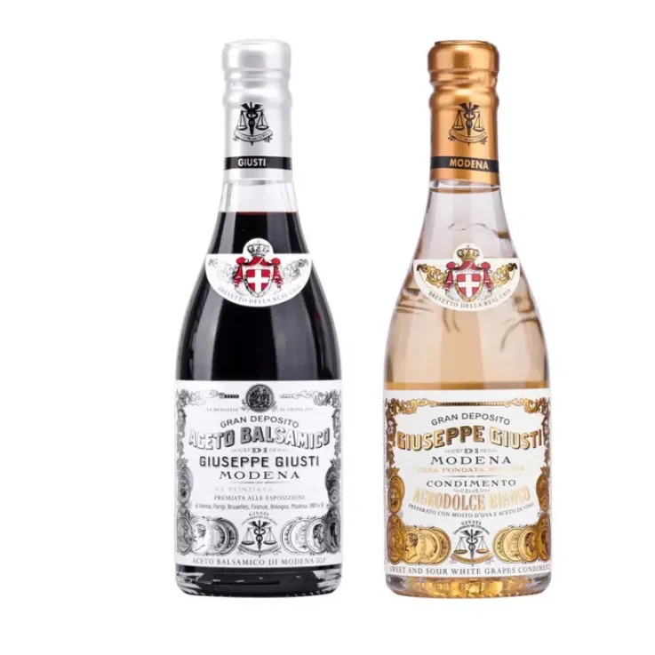 Giusti Vinegar Duo: Balsamic Vinegar of Modena PGI 1 Silver Medal and White Vinegar Dressing 250 ml x 2