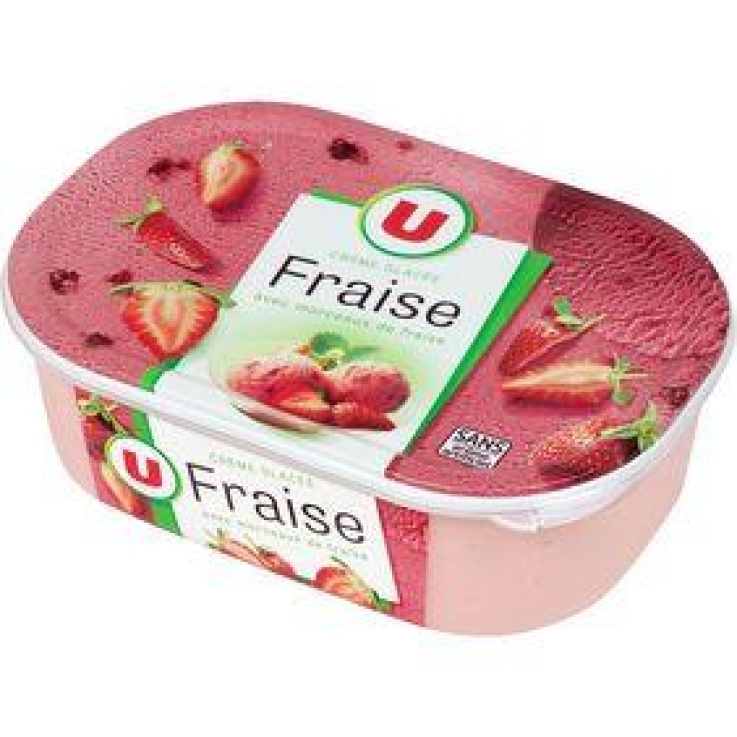 Glace fraise avec morceaux de fraises, U, vrac, 500g
