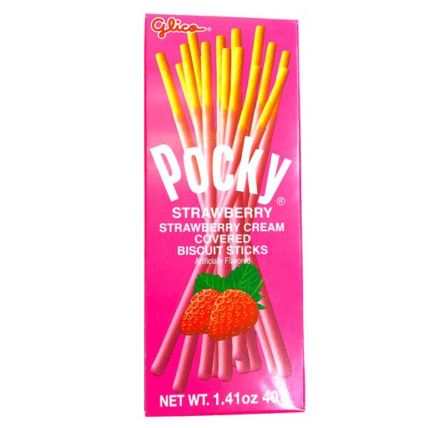 One of Japan’s favorite snacks, Pocky, now in strawberry flavor! These crunchy biscuit sticks are covered with creamy strawberry chocolate that’s perfect for any strawberry lover!