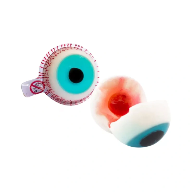TROLLI – Tubo de 60 bonbons gélifiés en forme de yeux fourrés d’un liquide sanguinolent emballés individuellement