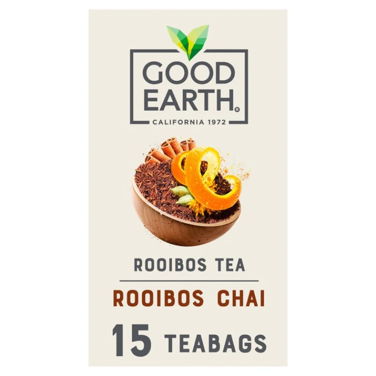 Rooibos, Honey Bush, Orange Peel, Cinnamon, Ginger Root, Turmeric, Cardamom Seeds, Clove, Natural Flavoring, Black Pepper.