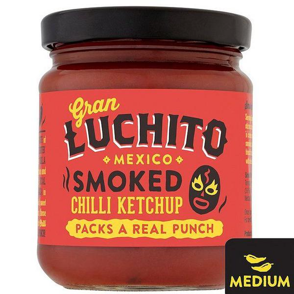 Le ketchup au piment fumé Gran luchito est moyennement piquant et utilise des piments Pasilla Oaxaca qui donnent un goût fumé différent de celui des chipotles trouvés dans le ketchup Chipotle. Le ketchup au piment fumé Gran luchito est un mélange de piments et de tomates espagnoles sucrées mûries au soleil.