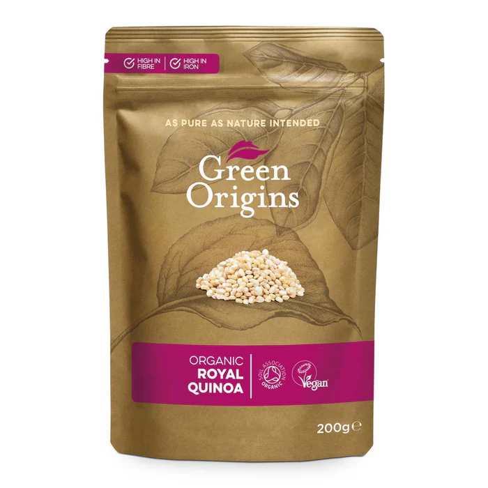 Quinoa, pronounced “keen-wa”, is a great wheat-free alternative to starchy grains. We use the Royal Quinoa variety, which is recognized as the highest quality quinoa available. Compared to standard quinoa, Royal Quinoa is larger, has a nuttier flavor and produces a fluffier grain when cooked. Organic, Suitable for Vegetarians.