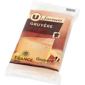 Gruyère Indication géographique protégée. – Fromage à pâte pressée cuite LAIT cru de vache, sel, présure, minimum en Savoieferments (dont LAIT).