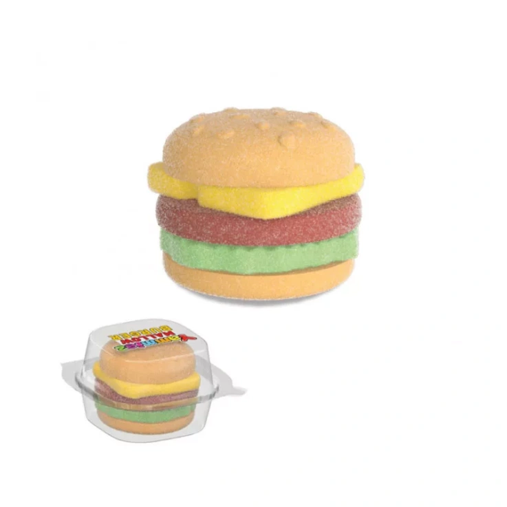 RELKON – Burger en guimauve (Marshmallow, Chamallow) enveloppé individuellement dans un emballage plastique (50 gr) – Vendu en gros conditionnement dans un présentoir de 12 burgers