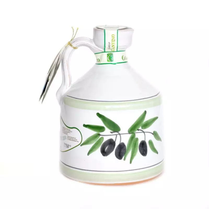 Galantino ceramic jars are hand-made by expert artisans in Puglia. Each piece is unique because it is decorated by hand. Inside there is Galantino Extra Virgin Olive Oil, which comes from the Ogliarola and Coratina varieties olives whose picking is carried out in November.