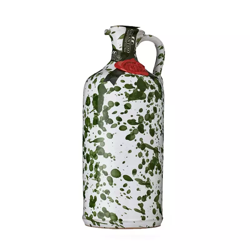 Galantino ceramic jars are hand-made by expert artisans in Puglia. Each piece is unique because it is decorated by hand. The models and the paintings can be also personalized. Inside there is Galantino Extra Virgin Olive Oil, which comes from the Ogliarola and Coratina varieties olives whose picking is carried out in November.