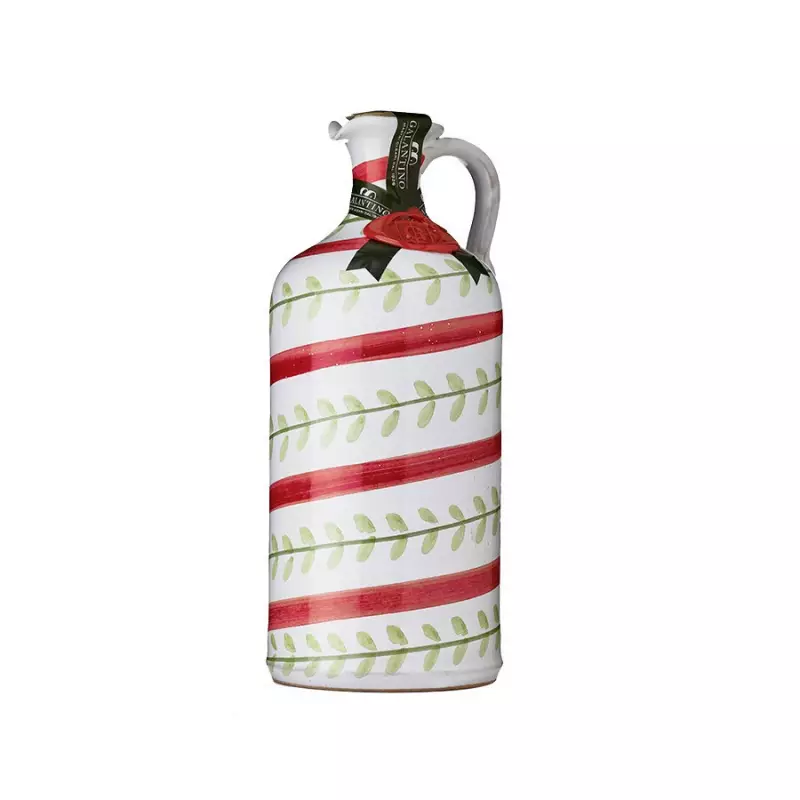 Galantino ceramic jars are hand-made by expert artisans in Puglia. Each piece is unique because it is decorated by hand. The models and the paintings can be also personalized. Inside there is Galantino Extra Virgin Olive Oil, which comes from the Ogliarola and Coratina varieties olives whose picking is carried out in November.