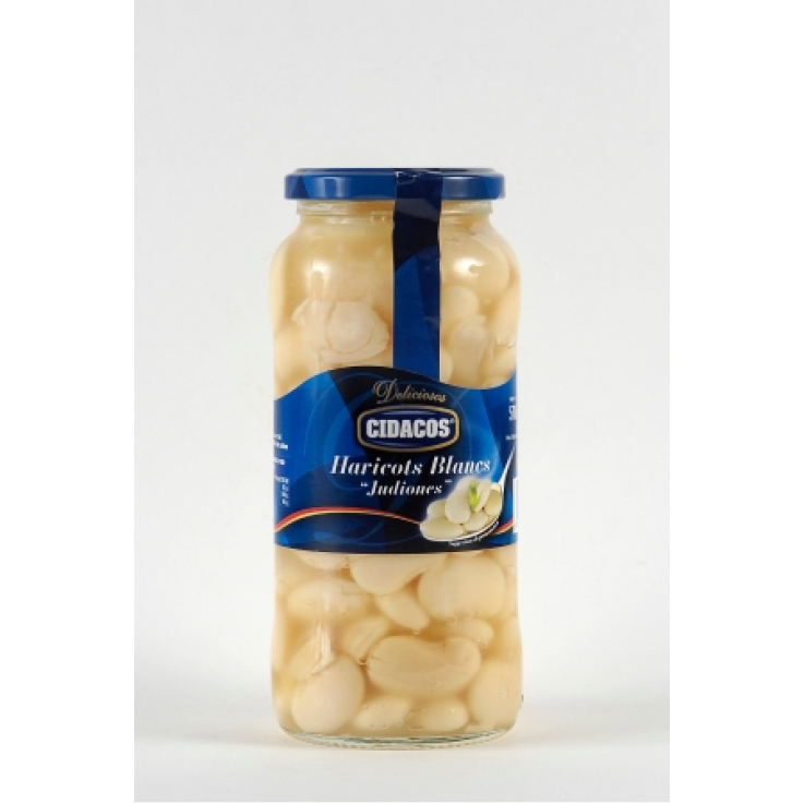 • Ingrédients : Haricots blancs “Judiones”, eau et sel, antioxydants: E-385 et E-223 (SULFITES). Valeur énergétiques et nutritionnelles moyennes pour 100g: Energie: 390 kJ/92 kcal Matières grasses 0,4g dont acides gras saturés 0,1g. Glucides 14g dont sucres 0,2g Protéines: 6,1g Sel: 0,8g