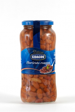 • Ingrédients : Haricots rouges, eau et sel. Antioxydants: E-385 et E-223 (SULFITES) Valeur énergétiques et nutritionnelles moyennes pour 100g: Energie: 391 kJ/93 kcal Matières grasses 0,7g dont acides gras saturés 0,1g. Glucides 12,6g dont sucres 1,5g Protéines: 6,5g Sel: 0,6g