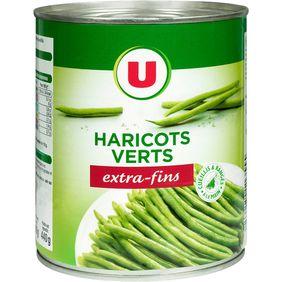 Haricots verts extra-fins rangés main U boîte 4/4 440g Haricots verts, eau, sel.