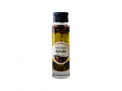 Huile d’olive Picholine et épices. Pour renforcer le côté piquant de l’huile d’Olive Picholine, nous y faisons macérer moult épices plus ou moins piquantes. Nous obtenons une huile très épicée pour assaisonner vos tomates pâtes, pizzas, carpaccio, tartare …
