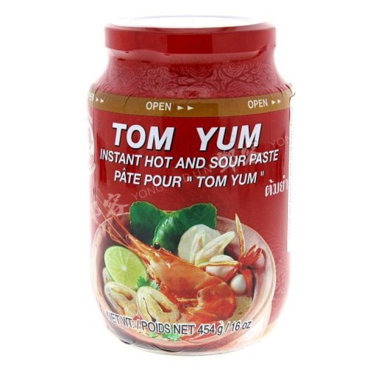 Paste for making Tom Yam soup. Start with a chicken broth, add paste, chicken meat, shrimp and mushroom. To make it extra tasty add some fresh coriander.