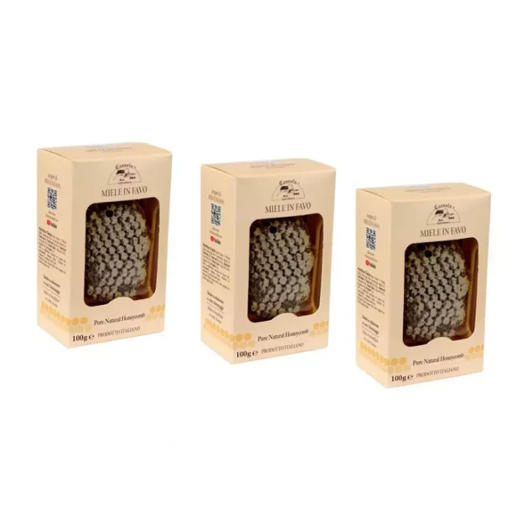 Italian Honey in Honeycomb from Apicoltura Cazzola in economy format is the best and most genuine way to enjoy honey in its purest form, directly as it is produced by bees. Discover this trio to take home three 100 g honeycomb honey packs at a special price. The honeycomb is a grouping of hexagonal wax cells built by bees to store honey and pollen. With its pure honeycomb honey, Apicoltura Cazzola pursues what has always been the company’s philosophy, namely not to modify what nature has already produced perfectly.