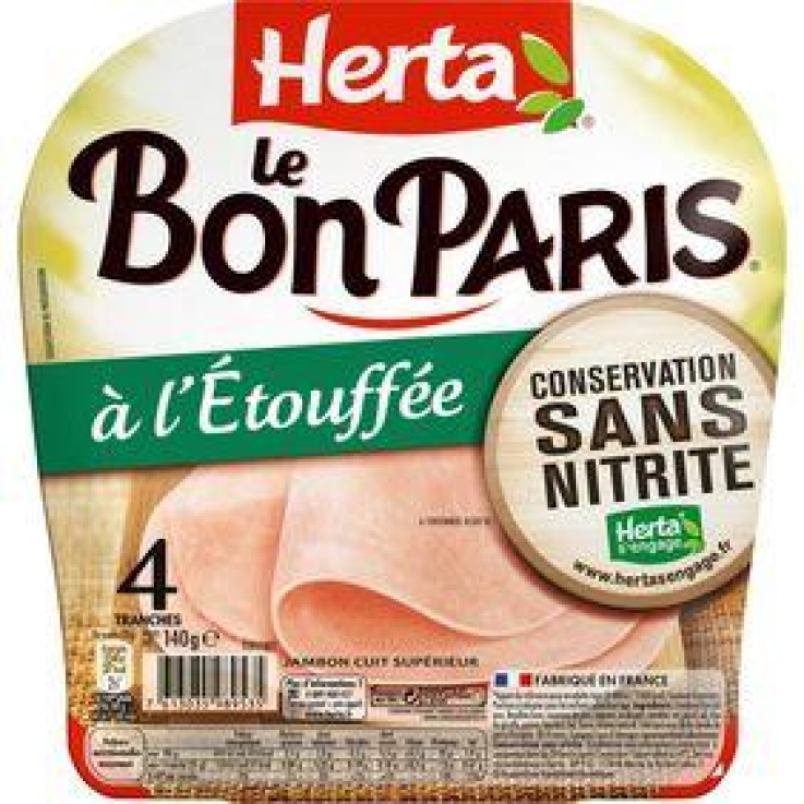 Jambon à l’étouffée conservation sans nitrites, Le Bon Paris HERTA, 4tranches, 140g