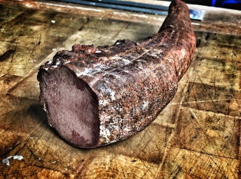 Une pièce entière cuite et séchée naturellement avec une touche fumée. Cette pièce unique réservée aux épicuriens confirmés vous surprendra par sa fraîcheur et ses tonalités. A couper en fines tranches, ou bien, pour plus d’originalité, couper en tranches plus épaisses et passer les tranches à la poêle quelques secondes (un aller retour) pour faire ressortir encore plus de puissance en bouche.