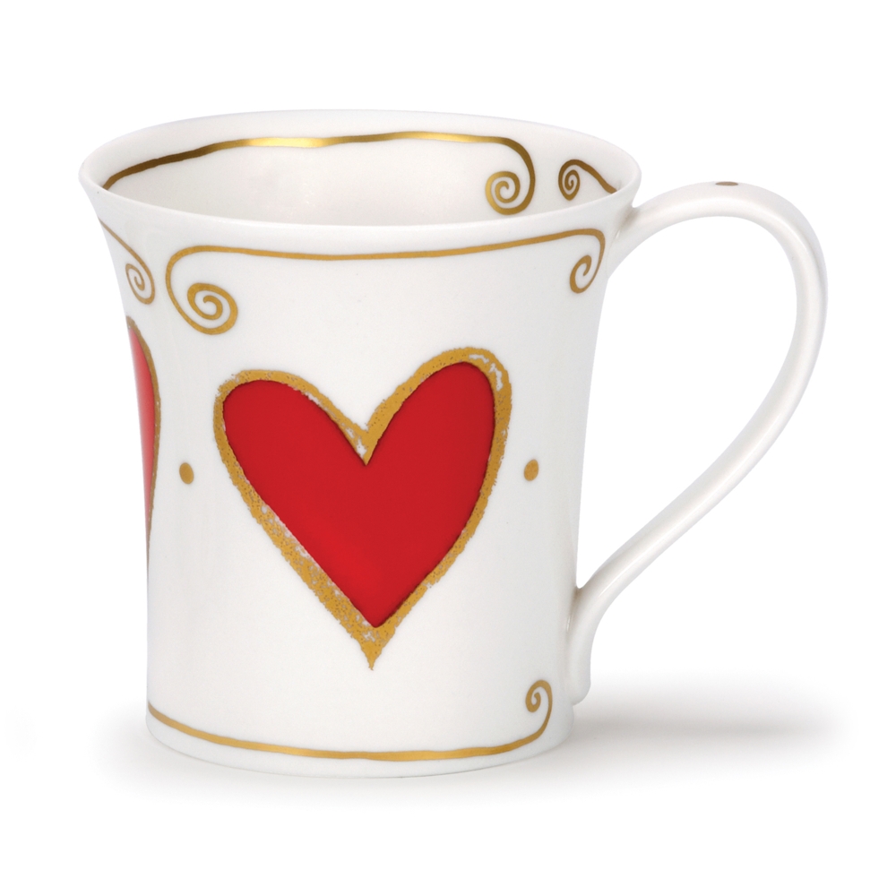 Opulent red love hearts by Caroline Bessey will set your pulse racing. Beautiful 22 carat gold scrolling and outlines throughout, this is an amazingly romantic mug.