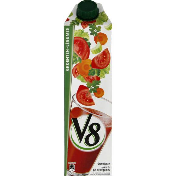 V8 est un jus de légumes délicieusement sain à base de 8 légumes différents, sans colorants ni agents conservateurs. Un verre V8 de 200ml équivaut à 2 portions de légumes et ainsi vous apporte la vitalité dont vous avez besoin.