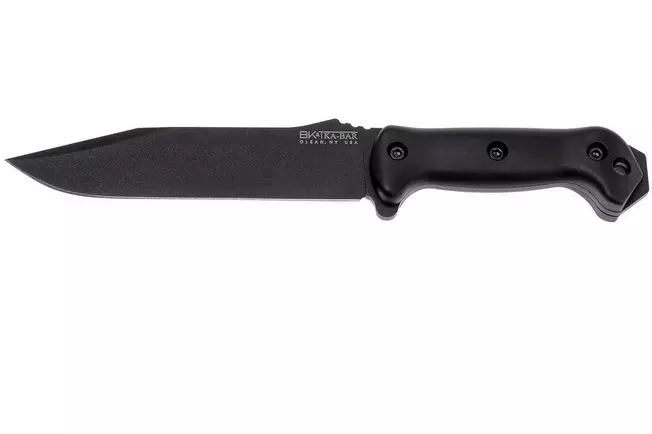Le KA-BAR BK7 Combat Utility est le résultat d’une coopération fructueuse entre le coutelier Ethan Becker et le fabricant de couteaux KA-BAR. Le couteau a été conçu pour offrir le plus de stabilité possible pour son poids. Ce couteau peut gérer le sien. La lame est en acier au carbone 1095. Cet acier n’est cependant pas résistant à la corrosion. Heureusement, la lame est améliorée avec un revêtement noir pour faciliter l’entretien. L’acier au carbone 1095 est facile à affûter et indulgent lorsqu’il s’agit d’une utilisation exigeante.