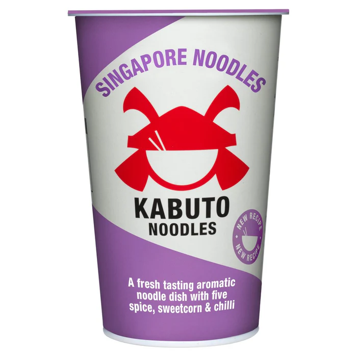 Our Singapore Noodles are inspired by the traditional dish from Singapore; made with wheat noodles, five spice, sweetcorn and chili. Every Kabuto Noodles pot is free from all the nasties (free from MSG, additives and preservatives) and we use only real ingredients to make a quick and convenient healthy lunch or filling instant noodles snack. Simply top up with boiling water for a delicious Asian inspired meal ready in just 4 minutes. This product is suitable for vegetarians. Tip: Try adding a side of gyoza, a sprinkle of crispy onions or a side of kimchi to personalize your dish. *packaging may vary*
